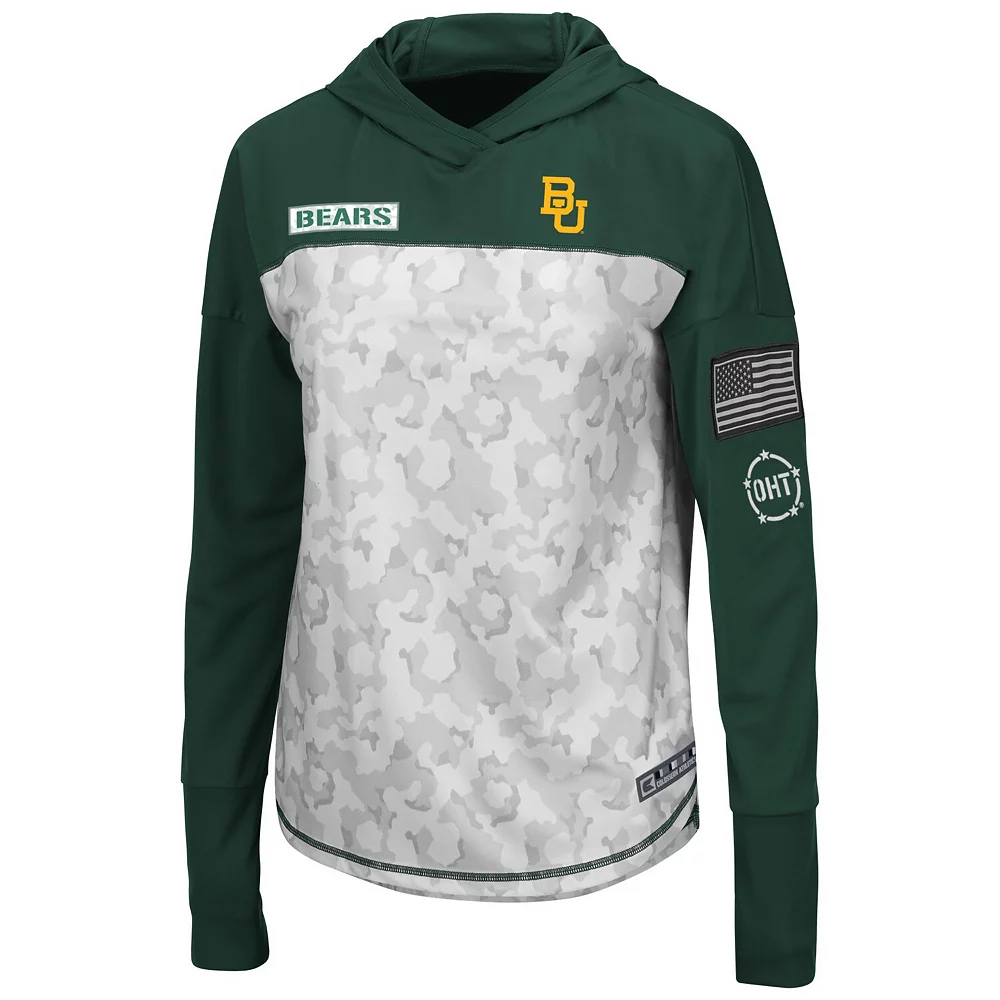 Grab this comfortable OHT Military Appreciation hoodie T-shirt from Colosseum every time you want to show off your Baylor Bears spirit. It features eye-catching team graphics to help you connect with fellow fans. Perfect for Baylor Bears game days, this stylish long sleeve tee is a great way to flaunt your fandom.