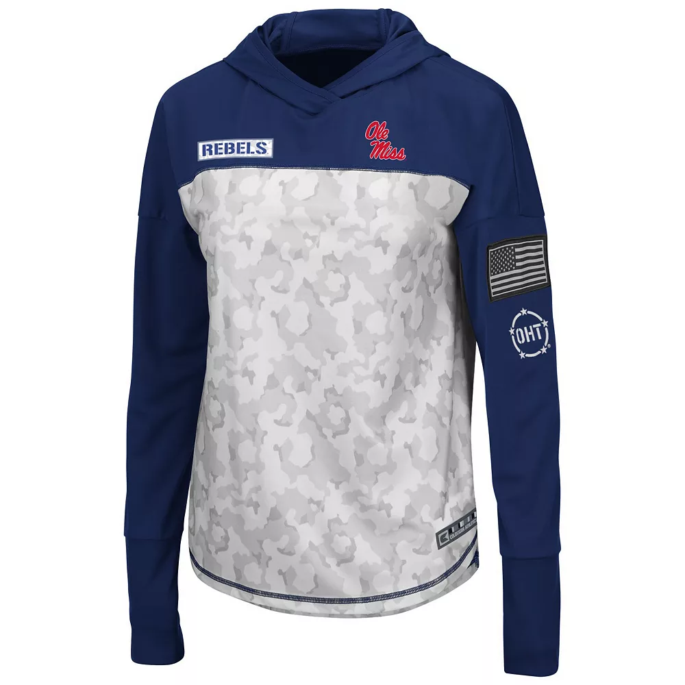 Grab this comfortable OHT Military Appreciation hoodie T-shirt from Colosseum every time you want to show off your Ole Miss Rebels spirit. It features eye-catching team graphics to help you connect with fellow fans. Perfect for Ole Miss Rebels game days, this stylish long sleeve tee is a great way to flaunt your fandom.