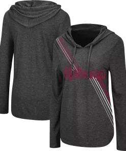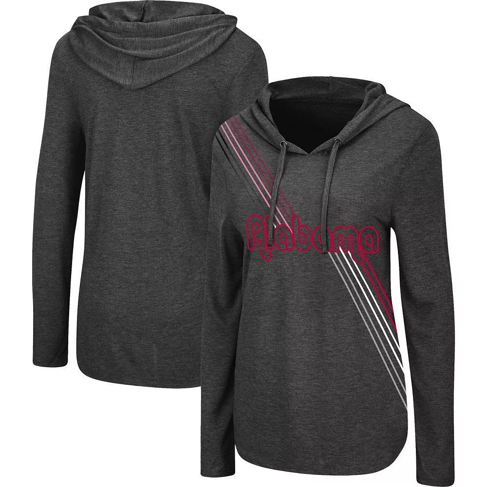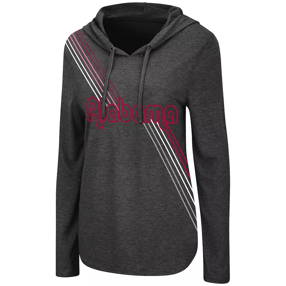 Freshen up your wardrobe with this Alabama Crimson Tide Bernadette hoodie T-shirt from Colosseum. This trendy top features attention-grabbing team graphics that run from top to bottom and an adjustable hood. Perfect for a layered look but light enough for casual wear, this shirt illustrates your Alabama Crimson Tide pride and gives you the best of both worlds.