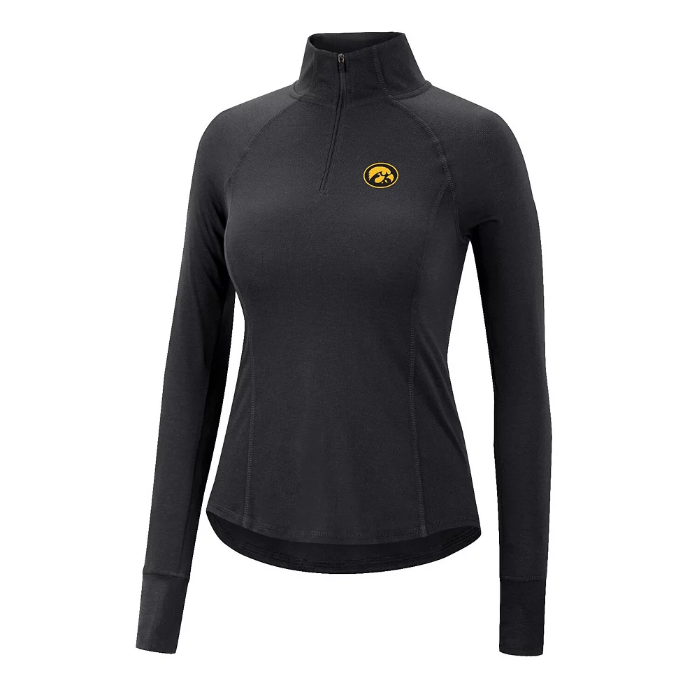 Relish in lightweight coverage and Iowa Hawkeyes spirit with this Colosseum Core Quinn quarter-zip top. Raglan sleeves allow for easy motion, and the mock neck supplies extra coverage. Signature Iowa Hawkeyes colors and graphics make for the ultimate game day layer.