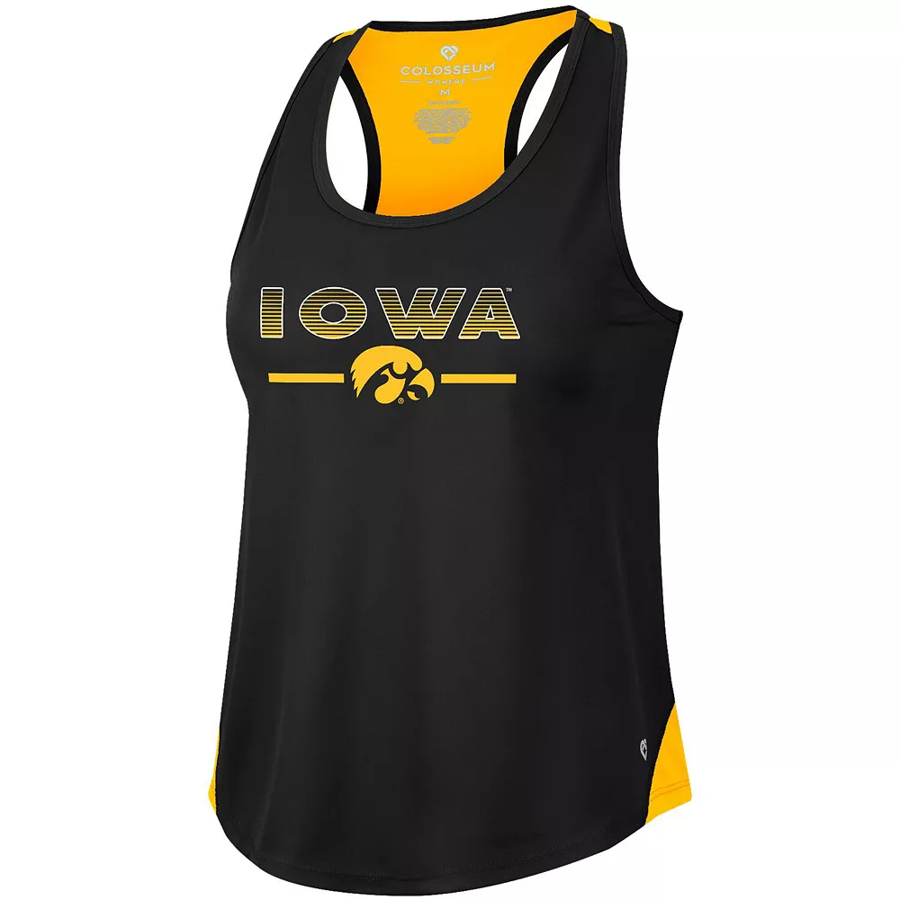 Hit the pavement in Iowa Hawkeyes style with this Sachs 2-Hit tank top. Built by Colosseum, it features bold graphics and a racerback design for extra cooling. Race day or game day, rep the Iowa Hawkeyes with this spirited top.