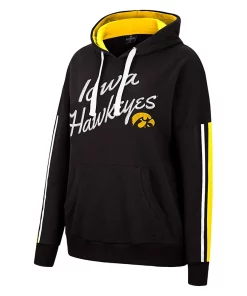 Ensure everyone knows the Iowa Hawkeyes are your favorite college team by wearing this Serena Oversized V-neck pullover hoodie from Colosseum. It features noticeable Iowa Hawkeyes graphics embroidered across the front and striping in coordinating colors on both sleeves. Cozy fleece lining also adds an extra layer of warmth and softness.