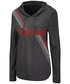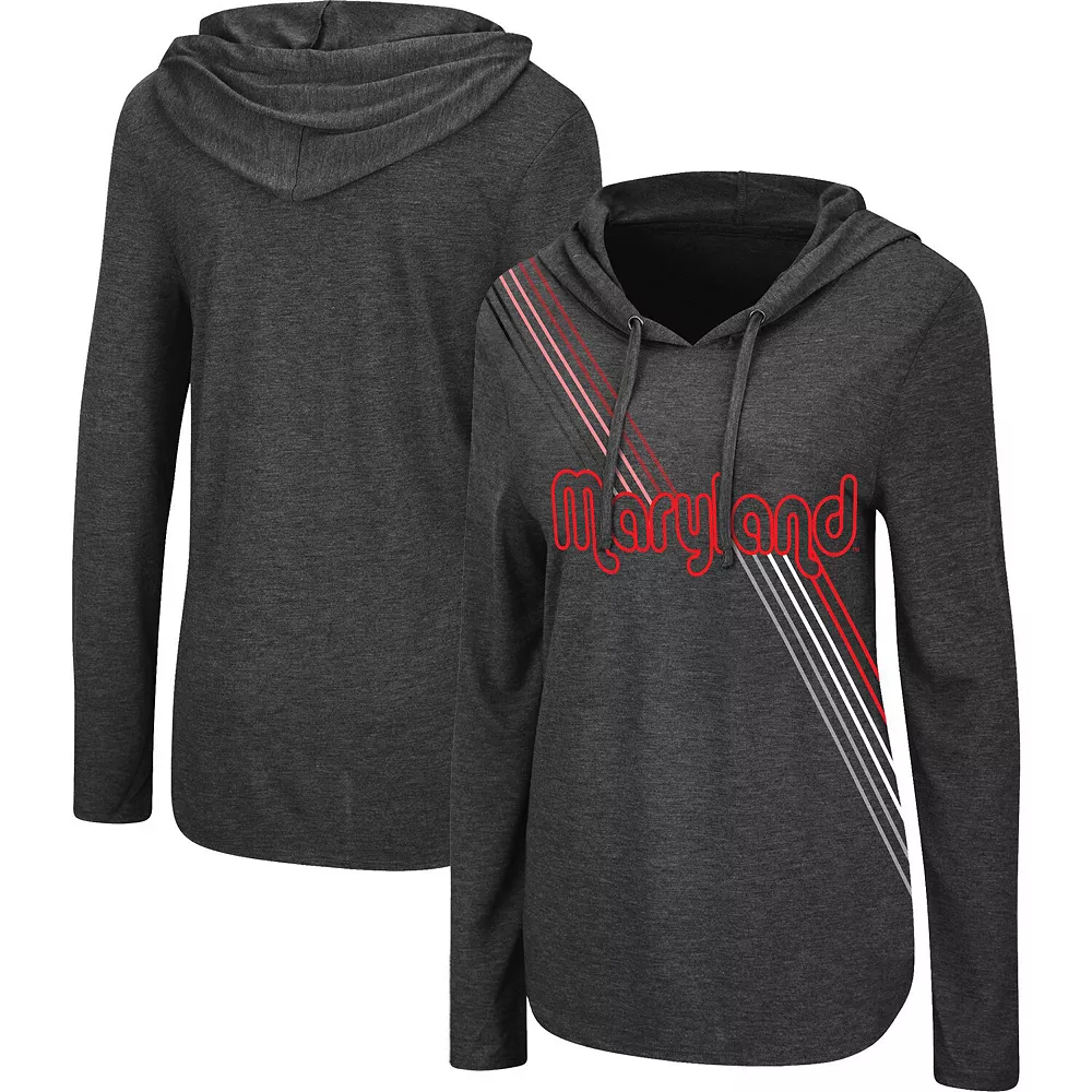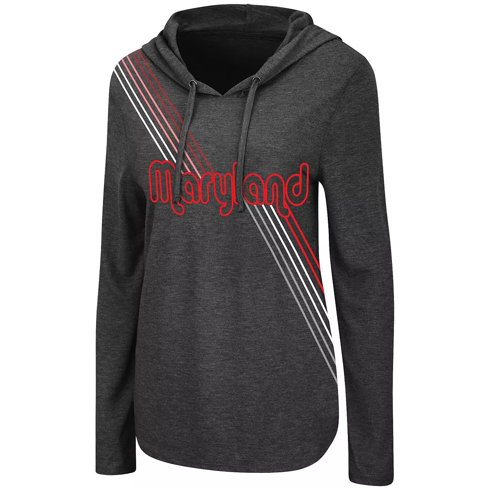 Freshen up your wardrobe with this Maryland Terrapins Bernadette hoodie T-shirt from Colosseum. This trendy top features attention-grabbing team graphics that run from top to bottom and an adjustable hood. Perfect for a layered look but light enough for casual wear, this shirt illustrates your Maryland Terrapins pride and gives you the best of both worlds.