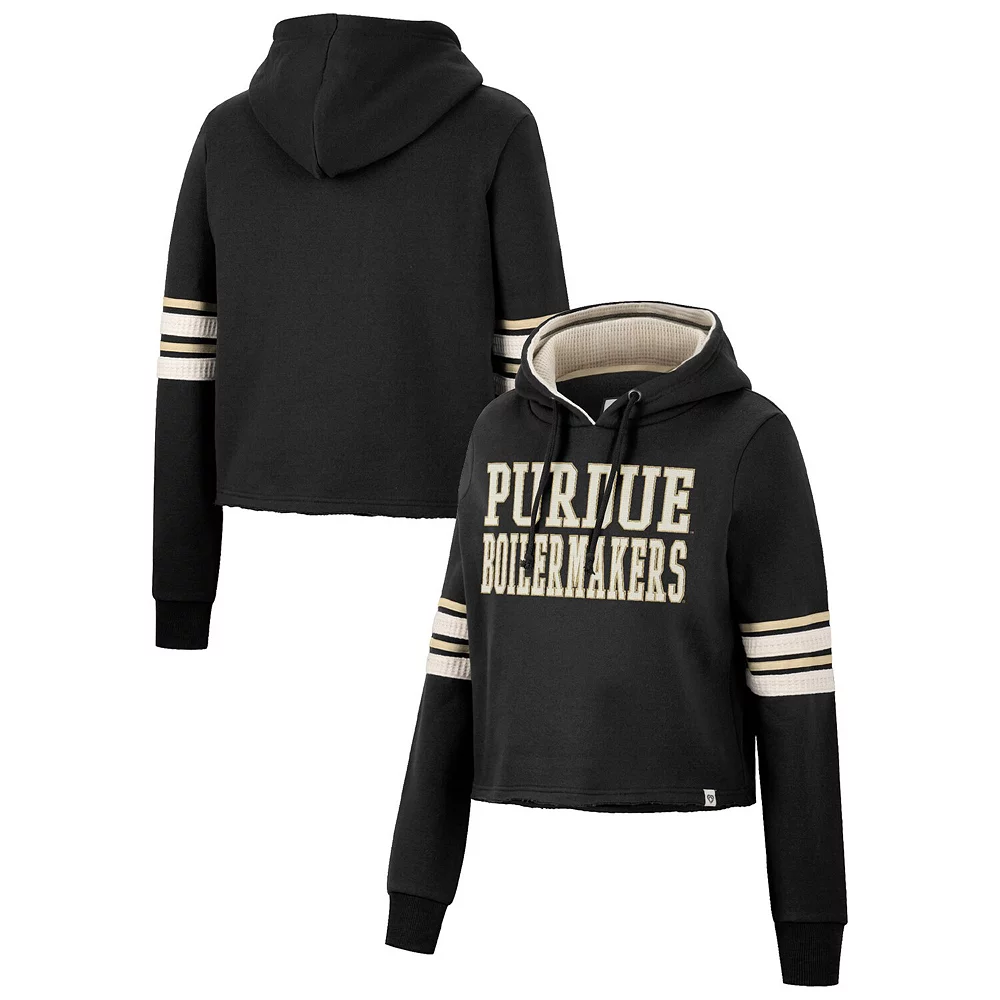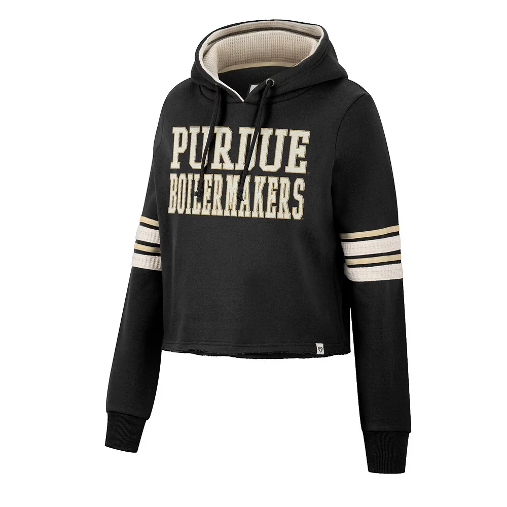 Layer up in chic style and show your support for the Purdue Boilermakers with this Retro cropped hoodie from Colosseum. This bold pullover features a bold wordmark embroidered on the chest and comes in a classic team color for an unquestionable display of spirit. Plus, the unfinished hem offers a unique twist on your fandom, allowing you to add an extra layer to your Purdue Boilermakers-inspired look before the next game.