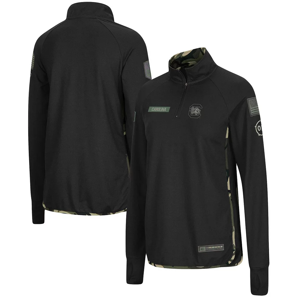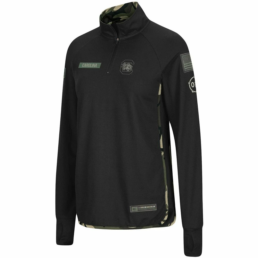 Display support for your South Carolina Gamecocks and service members with this OHT Military Appreciation quarter-zip jacket from Colosseum. It features raglan sleeves that provide greater movement, camo trimming and an embroidered American flag on the sleeve. The South Carolina Gamecocks graphics across the front will also let everyone know which collegiate team you back.