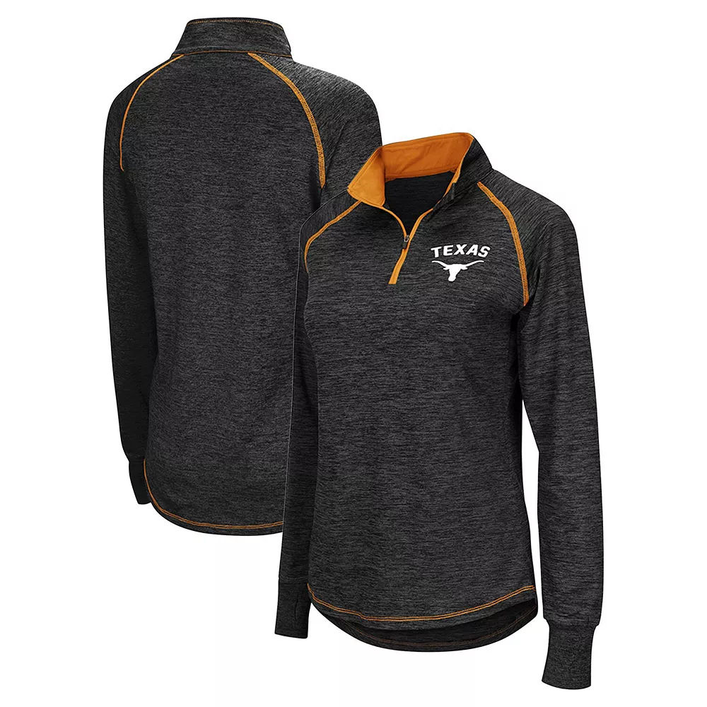 Put your style on full display with this fashionably cozy Texas Longhorns Bikram quarter-zip jacket from Colosseum. It’s the perfect choice for casual occasions on cooler days thanks to rib-knit cuffs with thumbholes and raglan sleeves for added comfort. This pullover also boasts authentic Texas Longhorns colors and graphics that instantly upgrade your outfit.