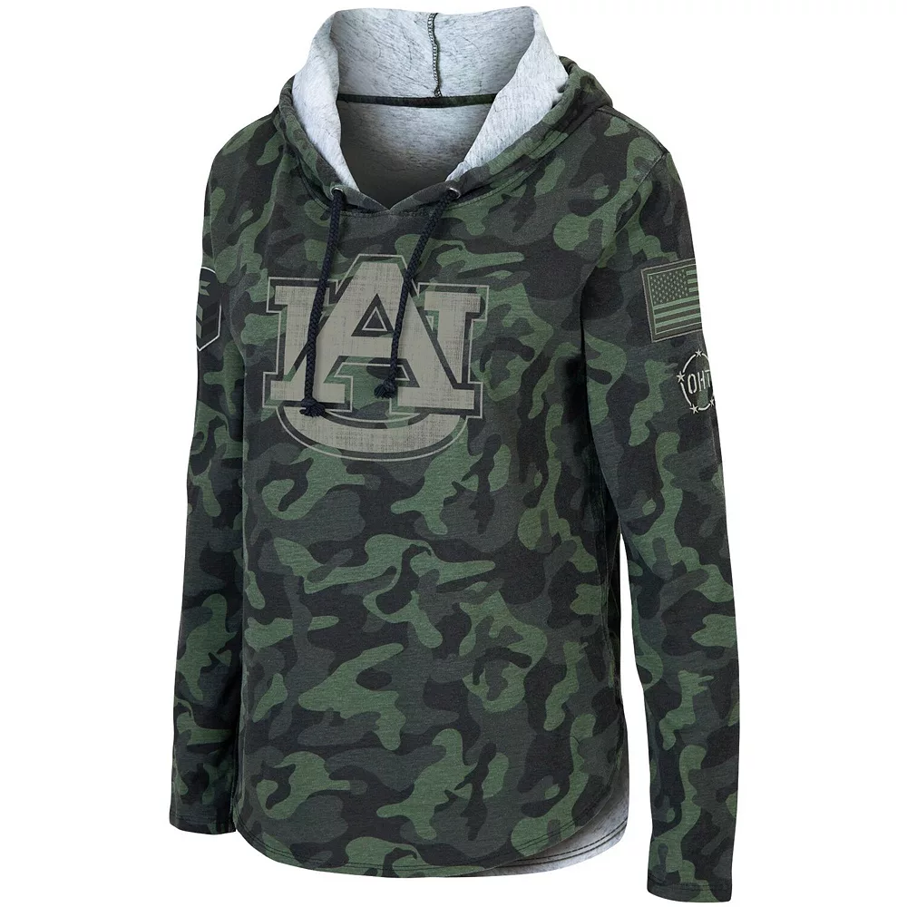 Pay tribute to service members as a devoted Auburn Tigers fan by wearing this OHT Military Appreciation Hoodie T-shirt from Colosseum. It features a camo pattern with Auburn Tigers graphics on the front and emblems of patriotic pride on the sleeves. You’ll stay warm while showing support for your favorite college team and military members in this comfy tee.