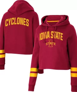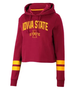 Gear up for a cool game day with this Iowa State Cyclones Throwback hoodie from Colosseum. It features a stylish cropped hem and a hood in case you need a little extra coverage. Plus, the contrasting sleeve stripes complement the signature Iowa State Cyclones graphics on the front and back for a dedicated fan look.