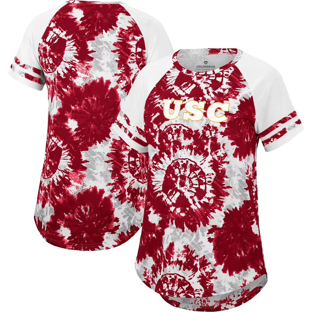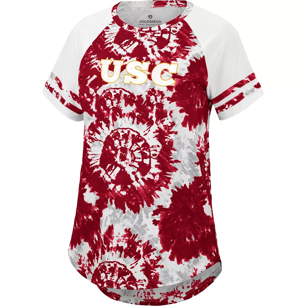 For a charming USC Trojans game day get up, this Annie Oversized T-shirt by Colosseum is sure to draw the eye. It features roomy raglan sleeves for a natural range of motion, and a rounded droptail hem for extra coverage. Best of all, this tee features a trendy tie-dye pattern in signature USC Trojans colors, and bold team graphics that easily flex your fandom.