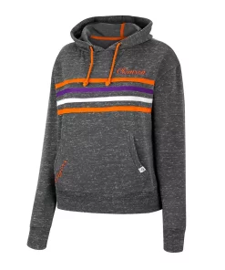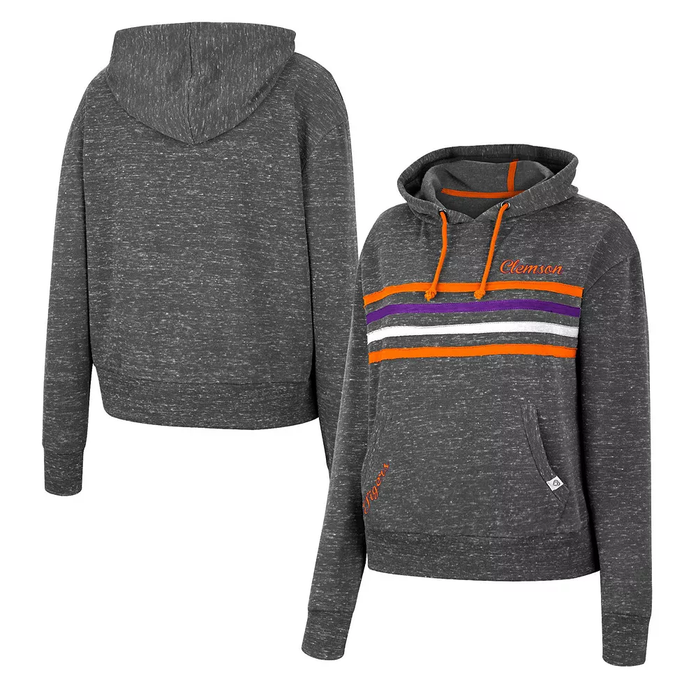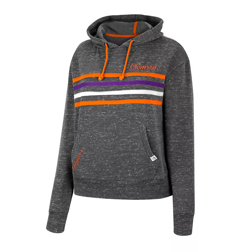For coverage, style and ease of wear, grab this Backstage pullover hoodie from Colosseum. It features a midweight design for warmth and a front pouch pocket to tuck small items away. Subtle Clemson Tigers graphics are complemented by coordinating stripes and an allover speckled pattern.