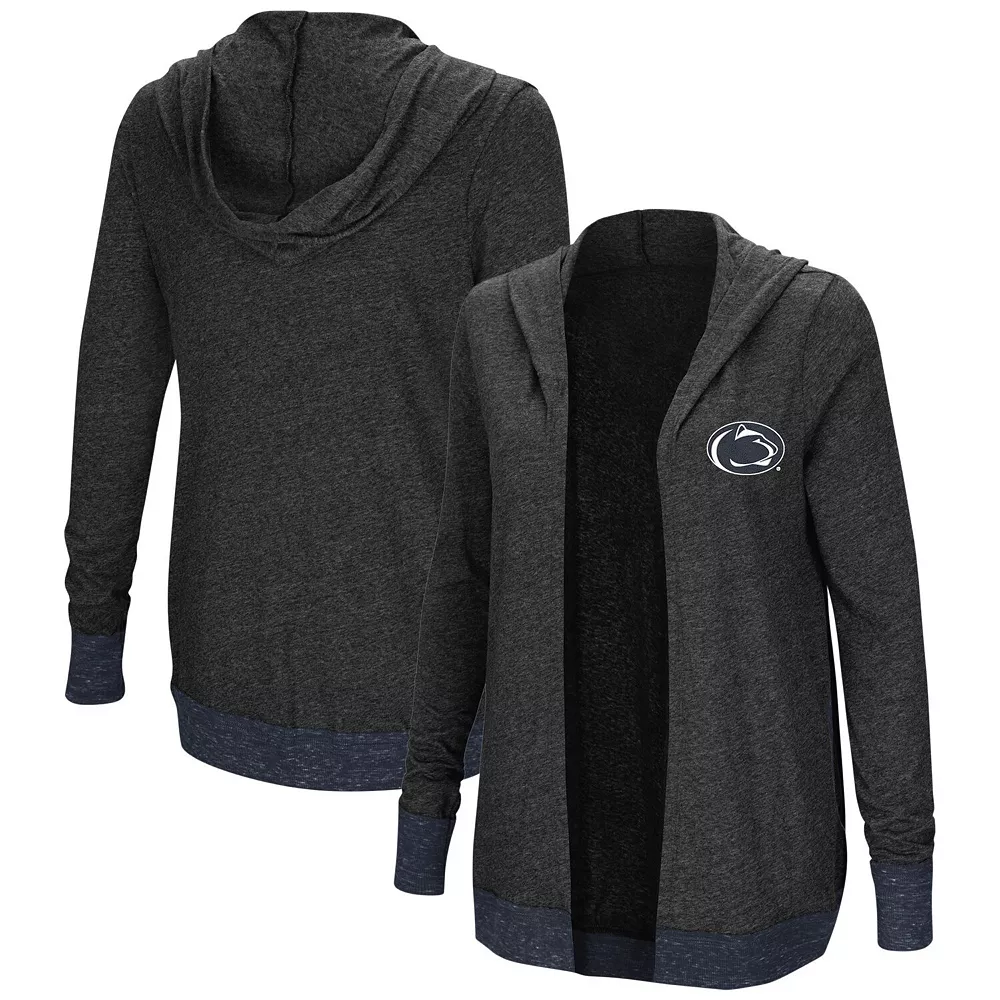 Whether you’re in the office or headed to dinner with some friends, it’s always a smart idea to keep a cardigan on hand. When you get chilly, slip on this festive Penn State Nittany Lions Steeplechase Open Hooded tri-blend cardigan from Colosseum! It has side pockets and crisp embroidered team graphics, so it’ll be easy for people to notice your team pride.