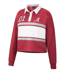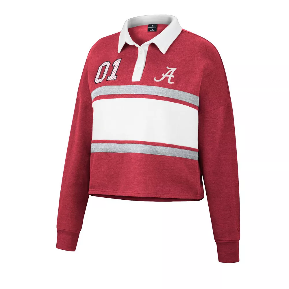 Merge the comfort of a long sleeve tee with classic polo details by wearing this I Love My Job Rugby shirt from Colosseum. It features stripes in team colors that highlight the embroidered Alabama Crimson Tide logo. Soft fabric also makes this Alabama Crimson Tide top comfortable to wear all day.