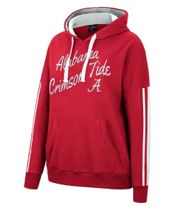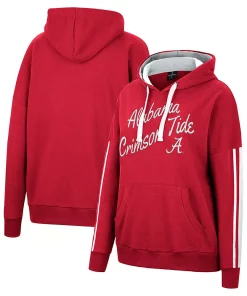 Ensure everyone knows the Alabama Crimson Tide are your favorite college team by wearing this Serena Oversized V-neck pullover hoodie from Colosseum. It features noticeable Alabama Crimson Tide graphics embroidered across the front and striping in coordinating colors on both sleeves. Cozy fleece lining also adds an extra layer of warmth and softness.