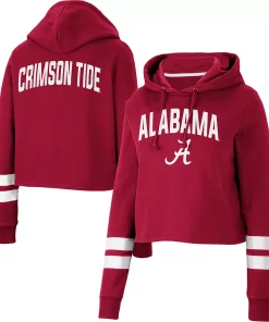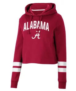 Gear up for a cool game day with this Alabama Crimson Tide Throwback hoodie from Colosseum. It features a stylish cropped hem and a hood in case you need a little extra coverage. Plus, the contrasting sleeve stripes complement the signature Alabama Crimson Tide graphics on the front and back for a dedicated fan look.