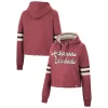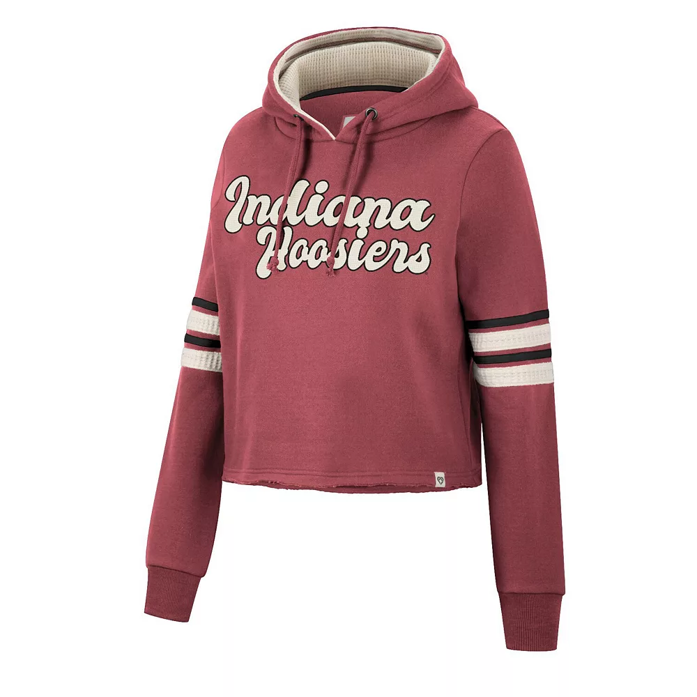 Layer up in chic style and show your support for the Indiana Hoosiers with this Retro cropped hoodie from Colosseum. This bold pullover features a bold wordmark embroidered on the chest and comes in a classic team color for an unquestionable display of spirit. Plus, the unfinished hem offers a unique twist on your fandom, allowing you to add an extra layer to your Indiana Hoosiers-inspired look before the next game.