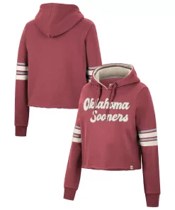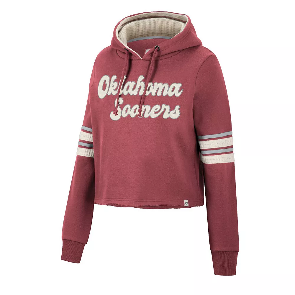 Layer up in chic style and show your support for the Oklahoma Sooners with this Retro cropped hoodie from Colosseum. This bold pullover feature a team wordmark embroidered on the chest and comes in their classic color for an unquestionable display of spirit. Plus, the unfinished hem offers a unique twist on your fandom, allowing you to add an extra layer to your team-inspired look before the next game.