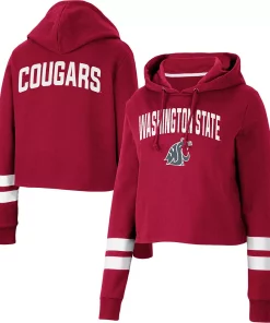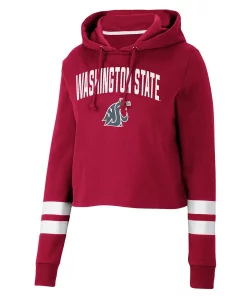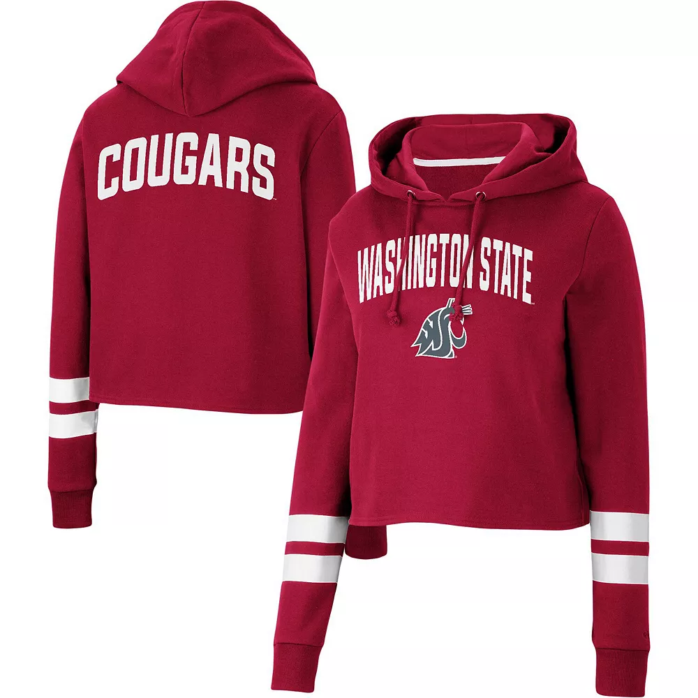 Gear up for a cool game day with this Washington State Cougars Throwback hoodie from Colosseum. It features a stylish cropped hem and a hood in case you need a little extra coverage. Plus, the contrasting sleeve stripes complement the signature Washington State Cougars graphics on the front and back for a dedicated fan look.