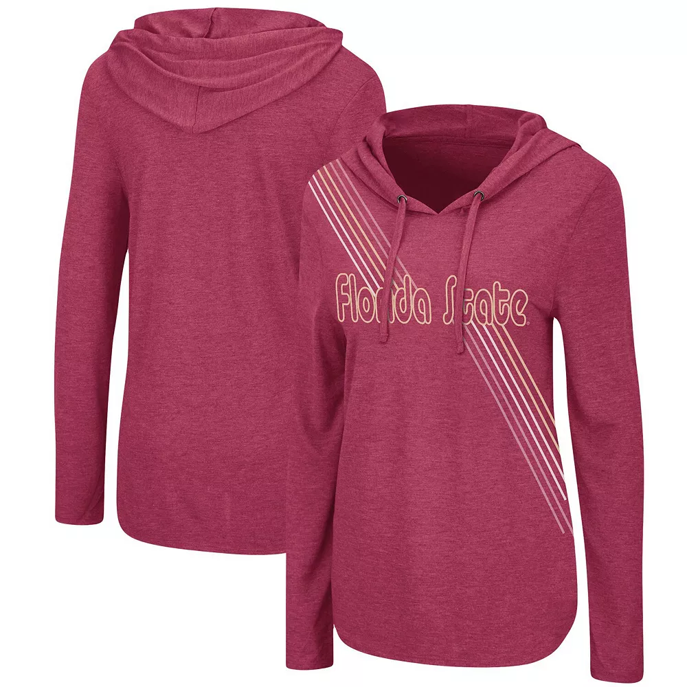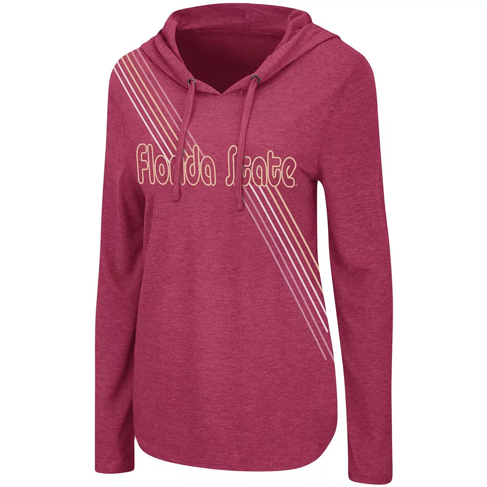 As the temperatures start to dip a little during the Florida State Seminoles season, stay warm and comfy in casual fashion by sliding on this Bernadette Hoodie T-shirt from Colosseum. The retro-style graphics add a vibrant vibe to your Florida State Seminoles gear. It’ll become a go-to favorite of yours.