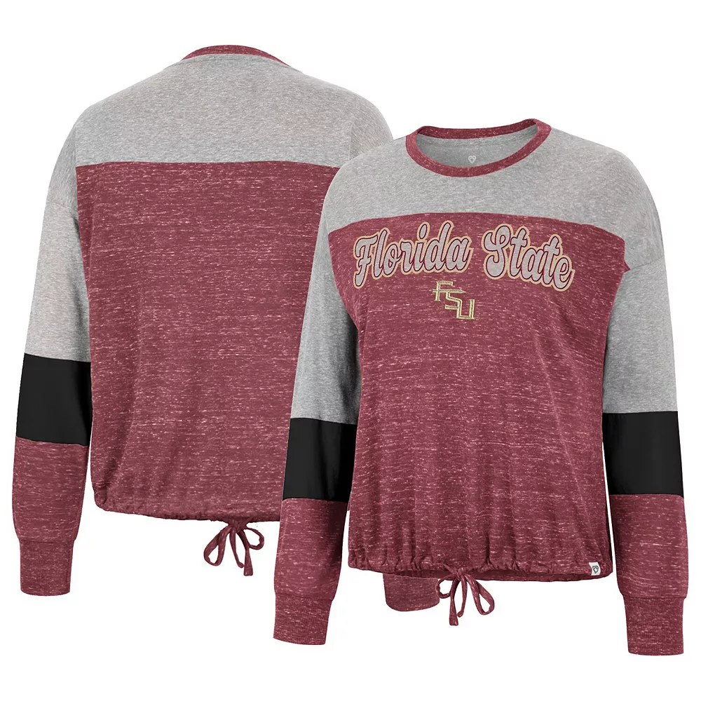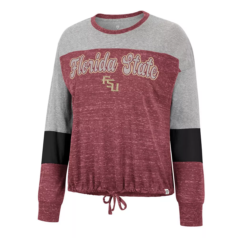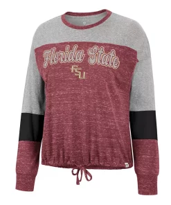 Add a fun finish to any fan look with this Florida State Seminoles Joanna T-shirt. This top from Colosseum features sleek team graphics and a stylish tie front. Whether tailgating or enjoying a day out, show school spirit with this eye-catching Florida State Seminoles tee.