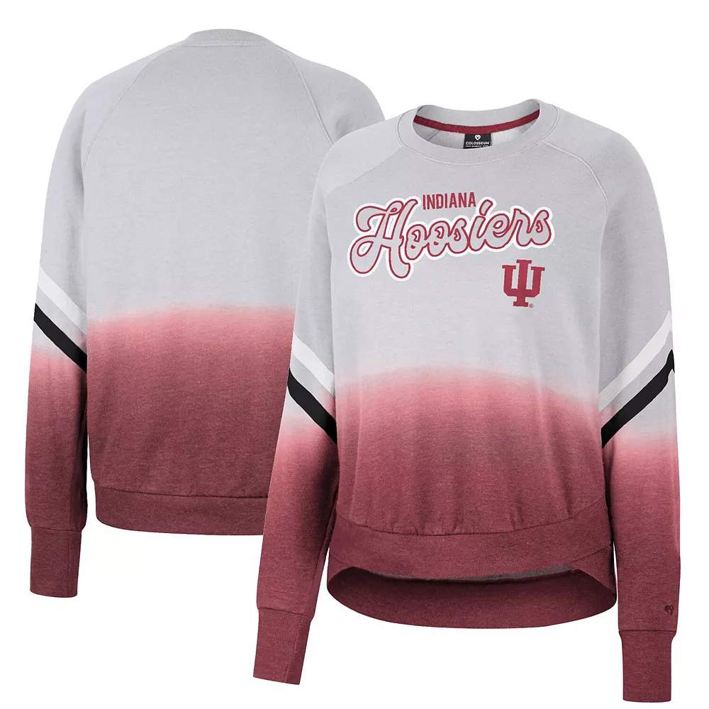 Upgrade your rotation of official Indiana Hoosiers apparel with this Cue Cards pullover sweatshirt from Colosseum. It features a vibrant dip-dye design and contrast-color stripes on the sleeves, making it a unique option for game day. The raglan sleeves offer increased movement and comfortability for your arms and shoulders, which will come in handy when you are cheering the Indiana Hoosiers on to victory.