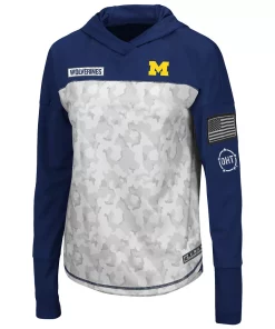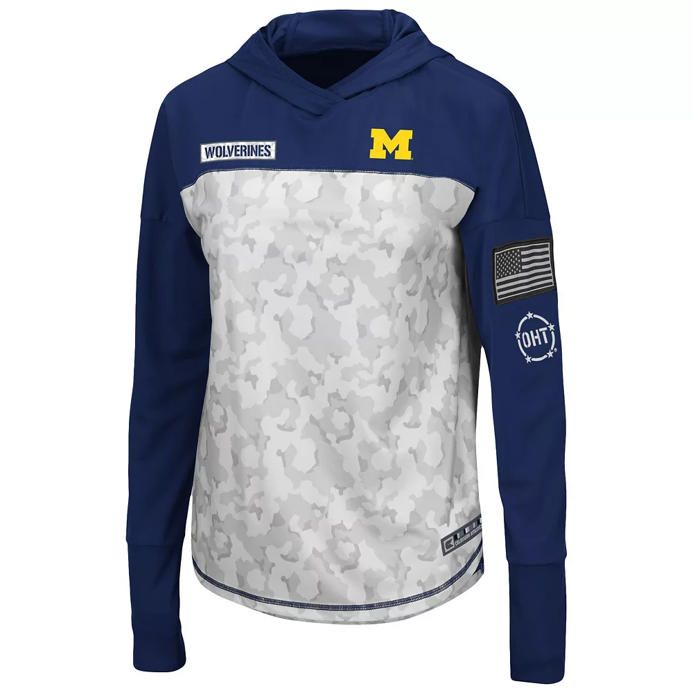 Grab this comfortable OHT Military Appreciation Mission Arctic Camo Hoodie T-shirt every time you want to show off your Michigan Wolverines spirit. It features eye-catching team graphics to help you connect with fellow fans. Perfect for Michigan Wolverines game days, this stylish tee is a great way to flaunt your fandom.