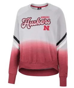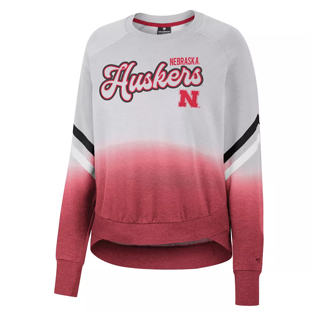 Upgrade your rotation of official Nebraska Huskers apparel with this Cue Cards pullover sweatshirt from Colosseum. It features a vibrant dip-dye design and contrast-color stripes on the sleeves, making it a unique option for game day. The raglan sleeves offer increased movement and comfortability for your arms and shoulders, which will come in handy when you are cheering the Nebraska Huskers on to victory.