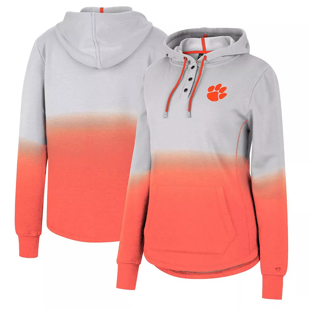 Add a spirited piece of Clemson Tigers gear to your rotation with this Aurelia pullover hoodie from Colosseum. It features a unique dip-dye design that is sure to draw attention from fellow Clemson Tigers fans. The quarter-snap neckline closure makes maintaining your desired fit throughout every wear easy as can be.