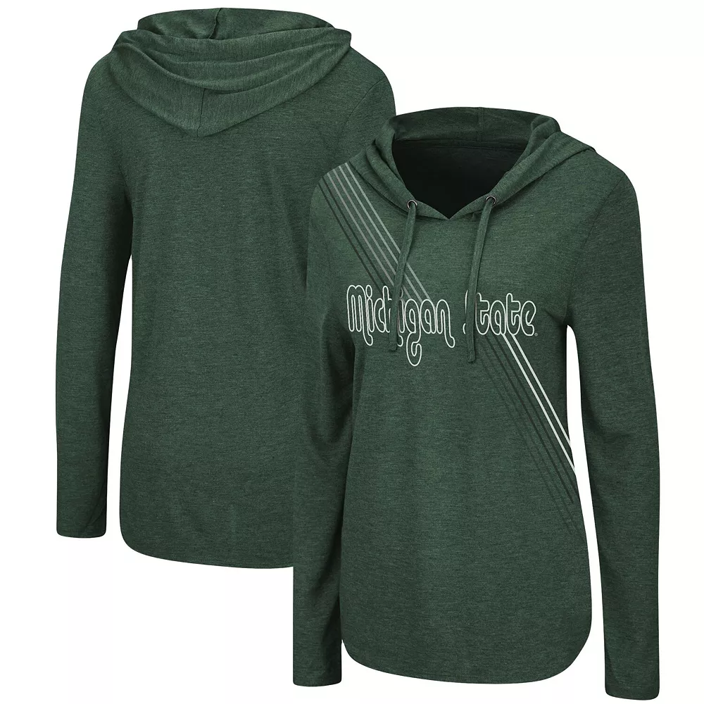 As the temperatures start to dip a little during the Michigan State Spartans season, stay warm and comfy in casual fashion by sliding on this Bernadette Hoodie T-shirt from Colosseum. The retro-style graphics add a vibrant vibe to your Michigan State Spartans gear. It’ll become a go-to favorite of yours.