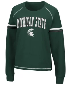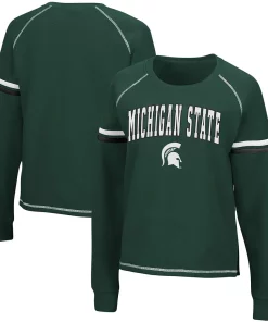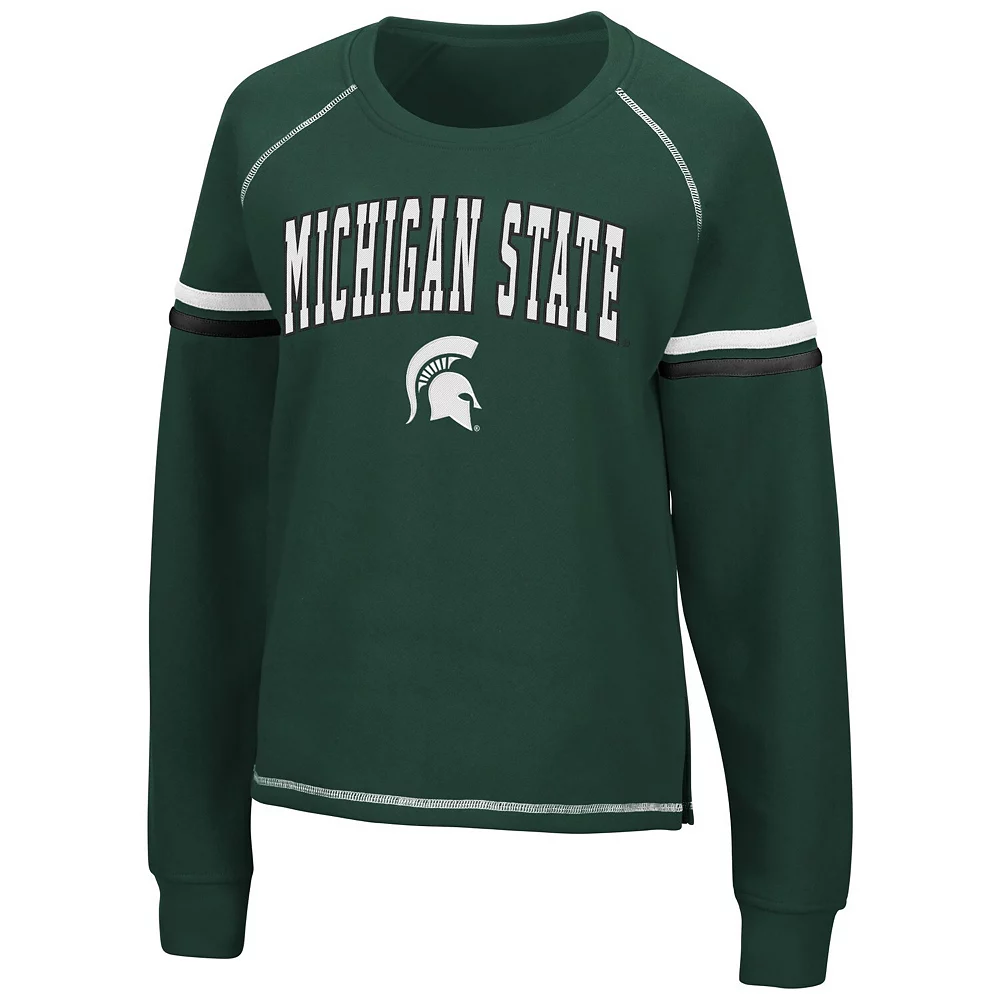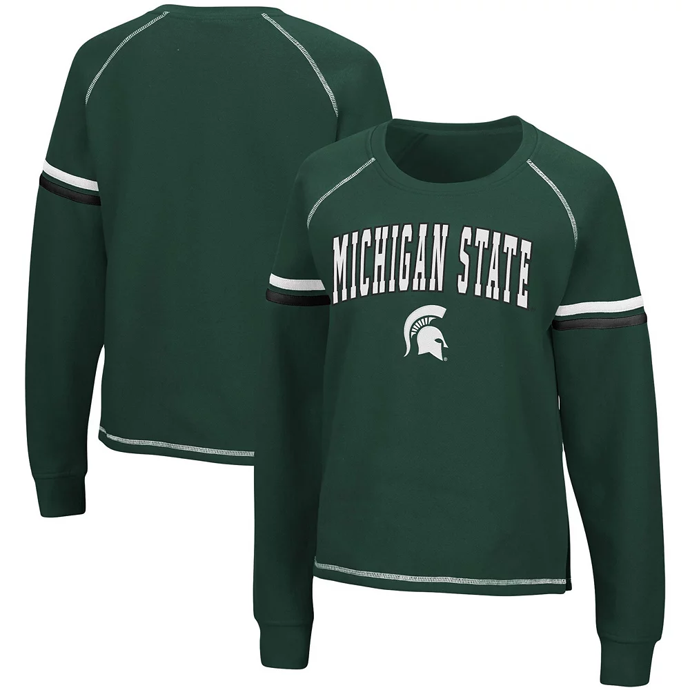Effortlessly show loyalty to the Michigan State Spartans when you wear this Sweep Pass Sleeve Stripe pullover sweatshirt from Colosseum. It features large Michigan State Spartans graphics highlighted by the contrast-color stitching and coordinating stripes. In addition, raglan sleeves provide some extra room for better movement.