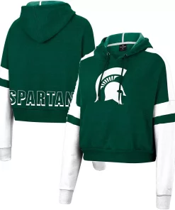 Gear up for Michigan State Spartans game day in this Throwback pullover hoodie from Colosseum. Its cropped hem adds a stylish touch while the team’s iconic logo lets everyone know about your die-hard fandom. Contrasting stripes in team colors going down the sleeves provide the perfect finishing touch to this Michigan State Spartans top.