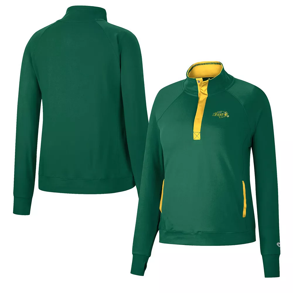 This Colosseum Kipling quarter-snap top is as stylish as it is comfy. It features a distinct NDSU Bison design with signature colors and graphics for a fan-forward look. Plus, raglan sleeves allow for easy movements, while the mock neck supplies extra coverage in case temperatures drop.