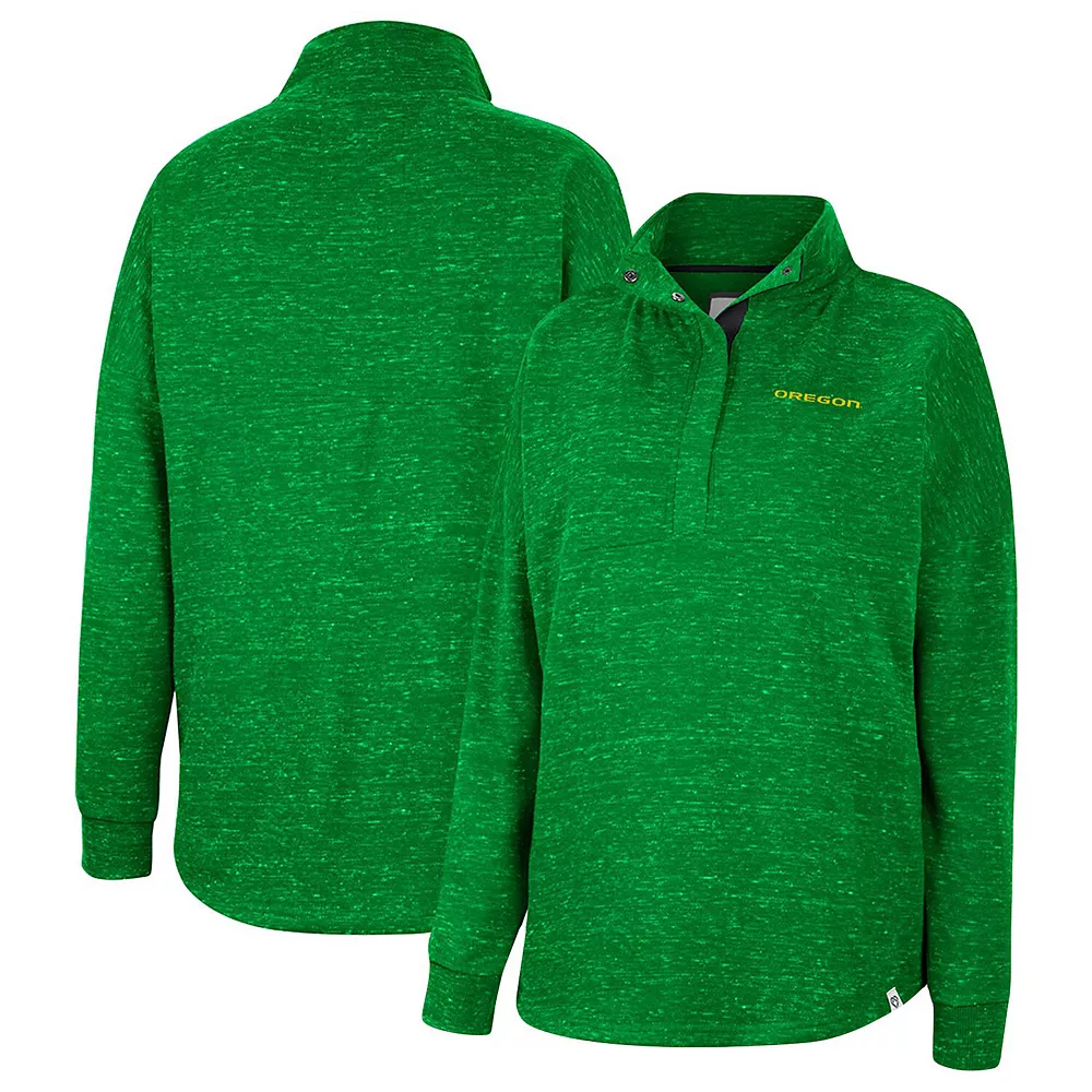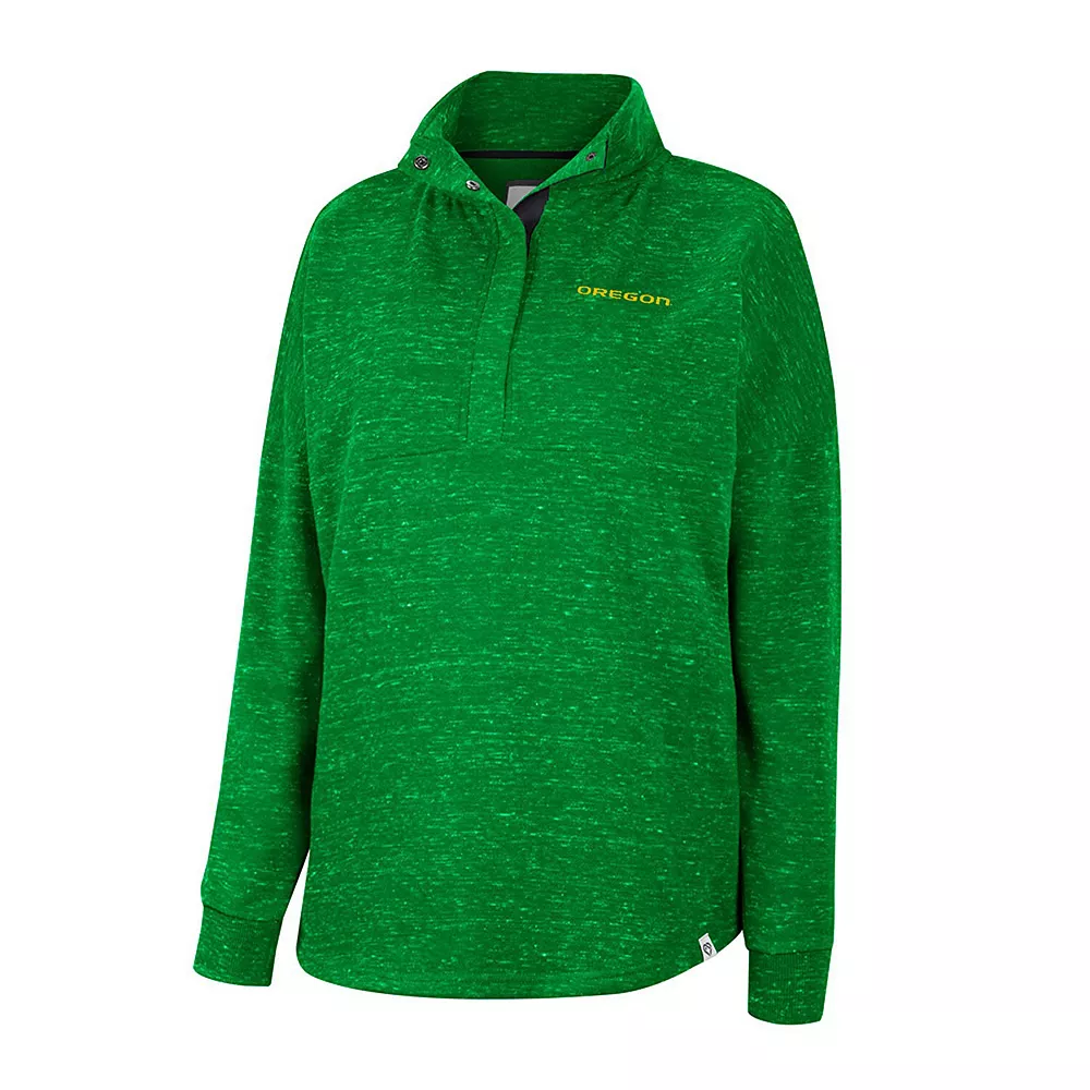 For coverage, style and ease of wear, grab this Colosseum Natalie quarter-snap top. Subtle Oregon Ducks graphics are complemented by an allover speckled pattern. Plus, dropped shoulders increase your arm room for extra comfort.