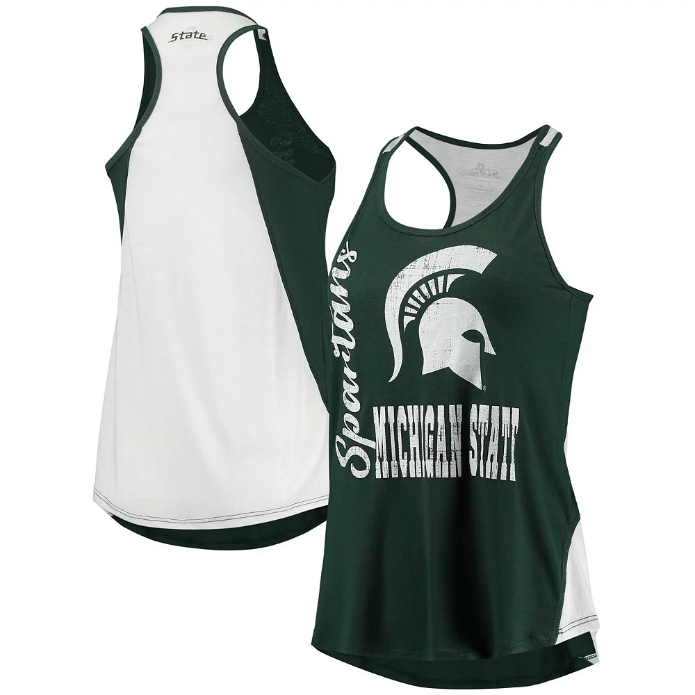 Show your dedication to the Michigan State Spartans with an athletic look in this Colosseum George Class 2-Hit tank top. It features bold Michigan State Spartans graphics and a distinct two-toned colorway that demonstrates your unwavering team pride. Plus, the racerback design along with its scoop neck make it easy to beat the heat and be ready for the game, the gym or whatever else life has in store.
