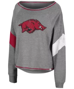 Make your Arkansas Razorbacks devotion effortlessly noticeable with this Amped pullover sweatshirt from Colosseum. It features a printed Arkansas Razorbacks logo emphasized by the team-colored chevron stripes and flatlock stitching. The boat neck also creates a more relaxed fit, and raglan sleeves provide some extra room for better movement.