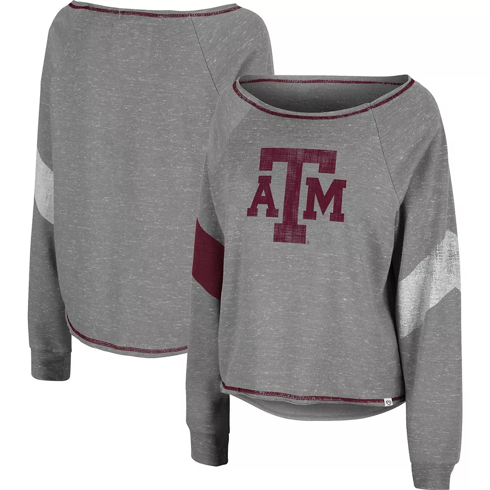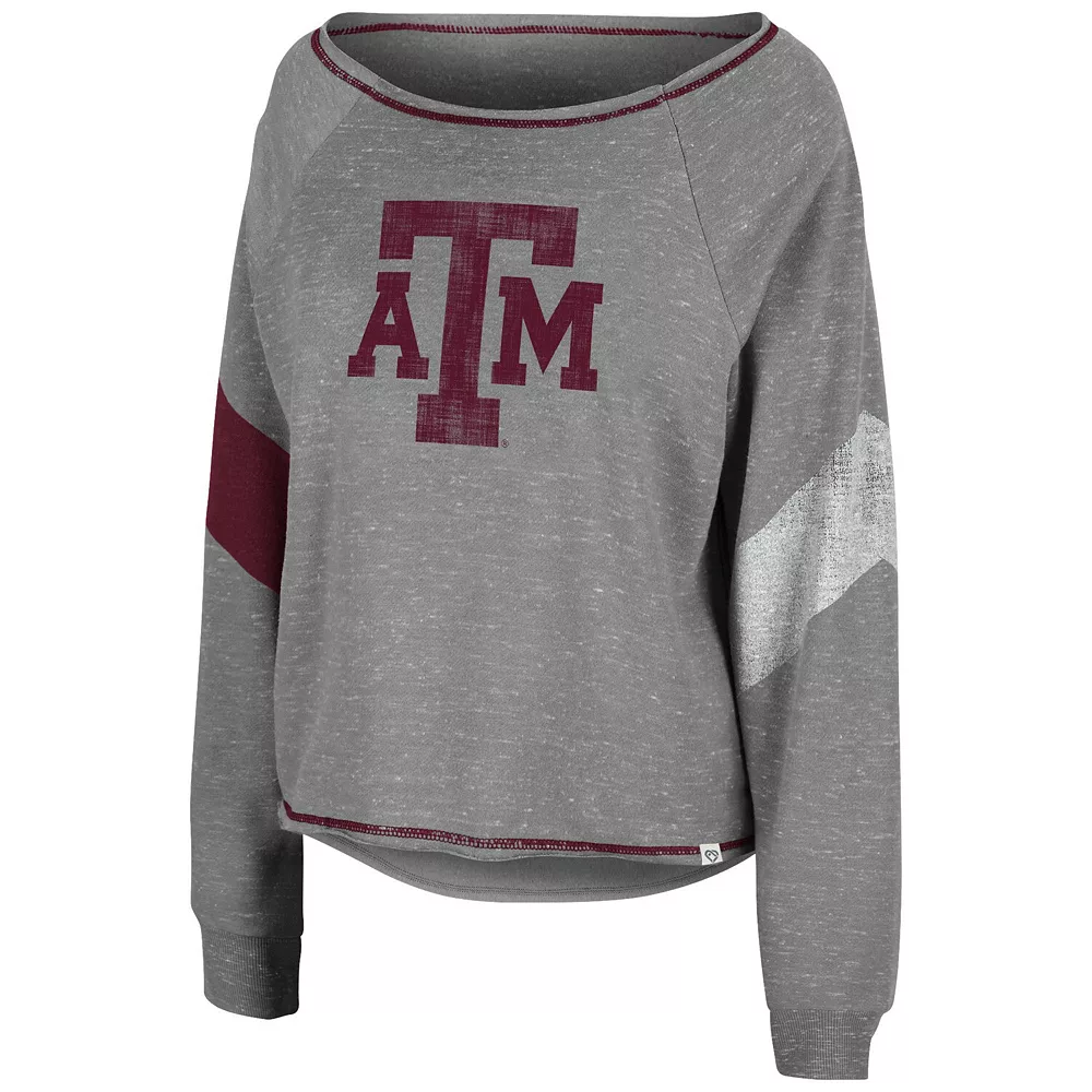 Make your Texas A&M Aggies devotion effortlessly noticeable with this Amped pullover sweatshirt from Colosseum. It features a printed Texas A&M Aggies logo emphasized by the team-colored chevron stripes and flatlock stitching. The boat neck also creates a more relaxed fit, and raglan sleeves provide some extra room for better movement.
