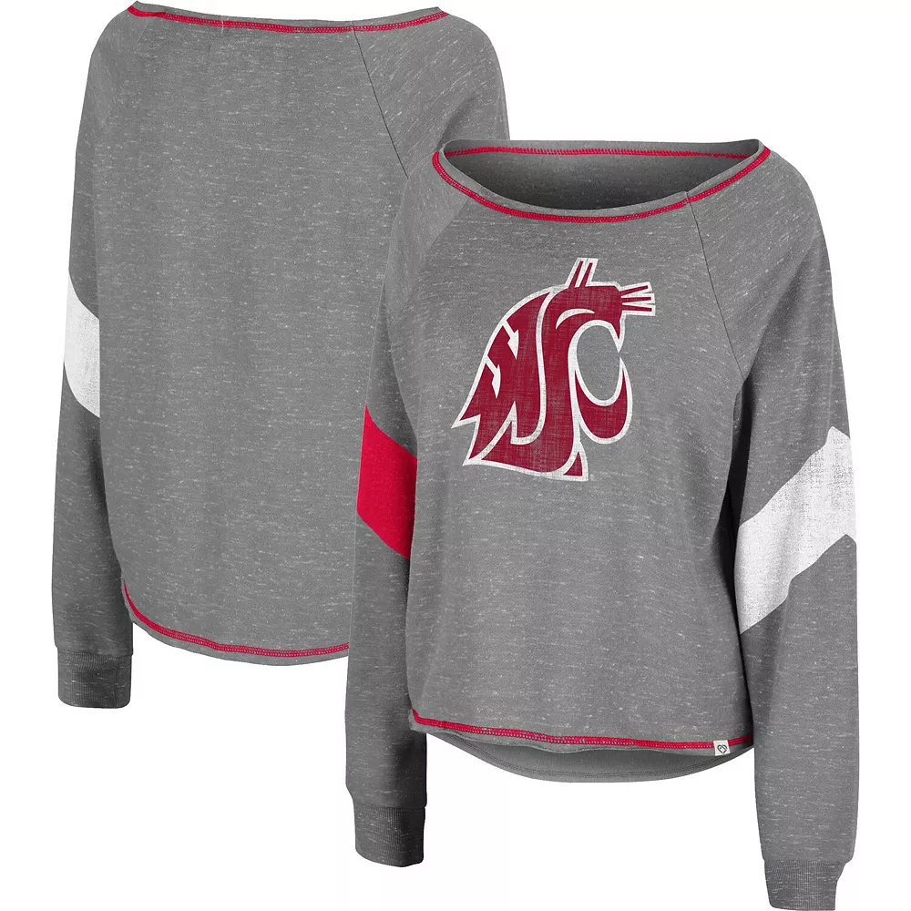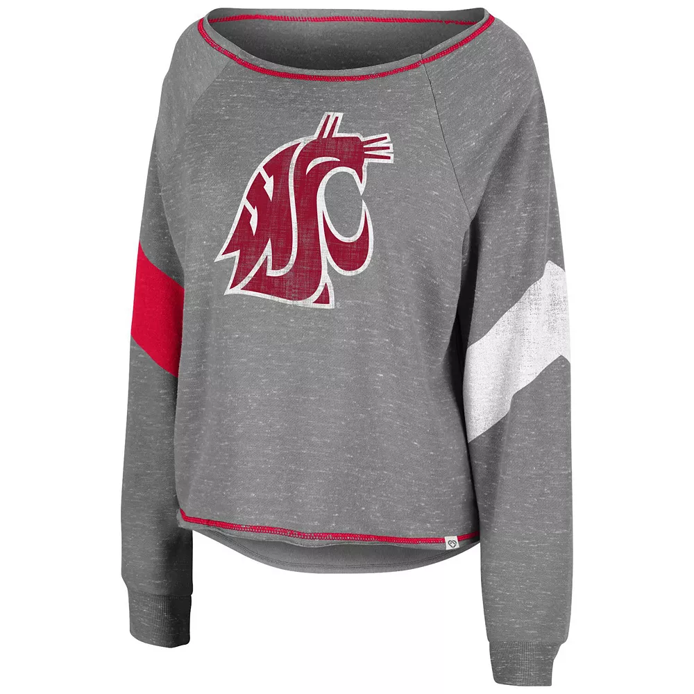 Make your Washington State Cougars devotion effortlessly noticeable with this Amped pullover sweatshirt from Colosseum. It features a printed Washington State Cougars logo emphasized by the team-colored chevron stripes and flatlock stitching. The boat neck also creates a more relaxed fit, and raglan sleeves provide some extra room for better movement.