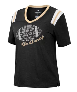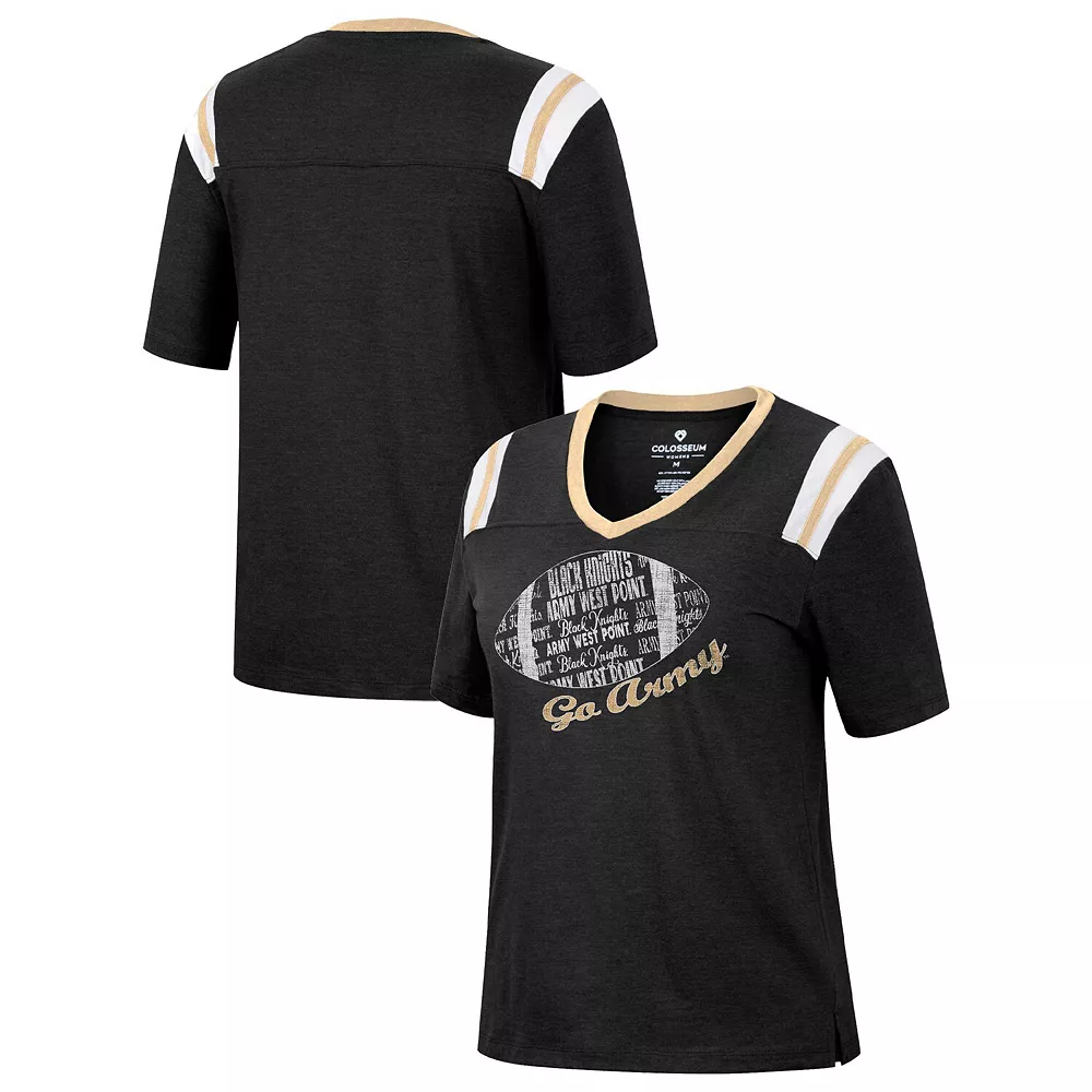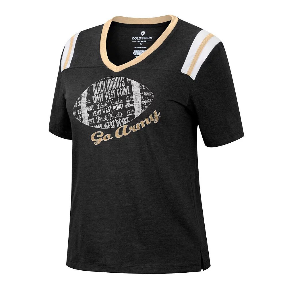 Showcase your love for Army Black Knights football with this 15 Min Early V-neck T-shirt from Colosseum. It features a bold team wordmark, logo and football graphic printed just below the flattering V-neckline. Plus, side split hems allow the shirt to move with you and offer a comfy fit and feel fit for any laid-back game day.