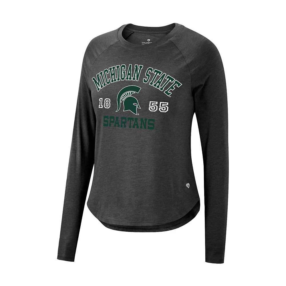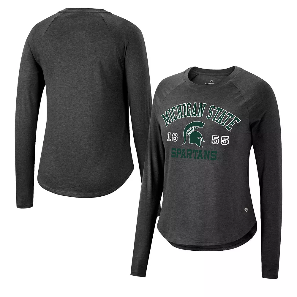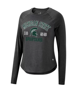Show that the Michigan State Spartans colors run deep each time you sport this bold Core Arch Established Date Harlow T-shirt from Colosseum. It features unmistakable Michigan State Spartans graphics printed across the chest along with raglan sleeves for added ease of movement. In addition, the rounded hem ensures this spirited team tee rests comfortably at the waist.