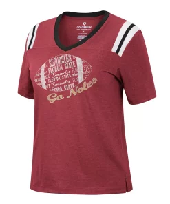 Showcase your love for Florida State Seminoles football with this 15 Min Early V-neck T-shirt from Colosseum. It features a bold team wordmark, logo and football graphic printed just below the flattering V-neckline. Plus, side split hems allow the shirt to move with you and offer a comfy fit and feel fit for any laid-back game day.