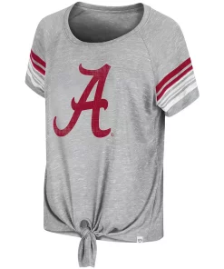 Look fashionable on Alabama Crimson Tide game day in this Boo You Knotted T-shirt from Colosseum. It features printed Alabama Crimson Tide graphics accentuated by the stripes in coordinating team colors and a chic tie detail in the front. Plus, raglan sleeves provide a little extra room for more comfortable movement.