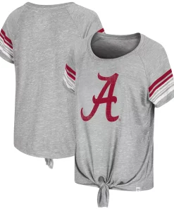 Look fashionable on Alabama Crimson Tide game day in this Boo You Knotted T-shirt from Colosseum. It features printed Alabama Crimson Tide graphics accentuated by the stripes in coordinating team colors and a chic tie detail in the front. Plus, raglan sleeves provide a little extra room for more comfortable movement.