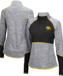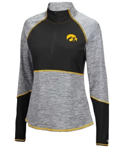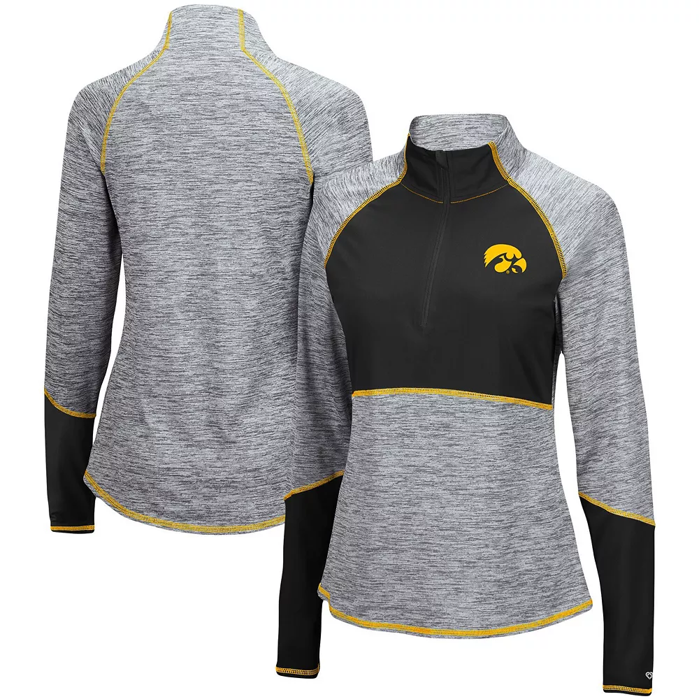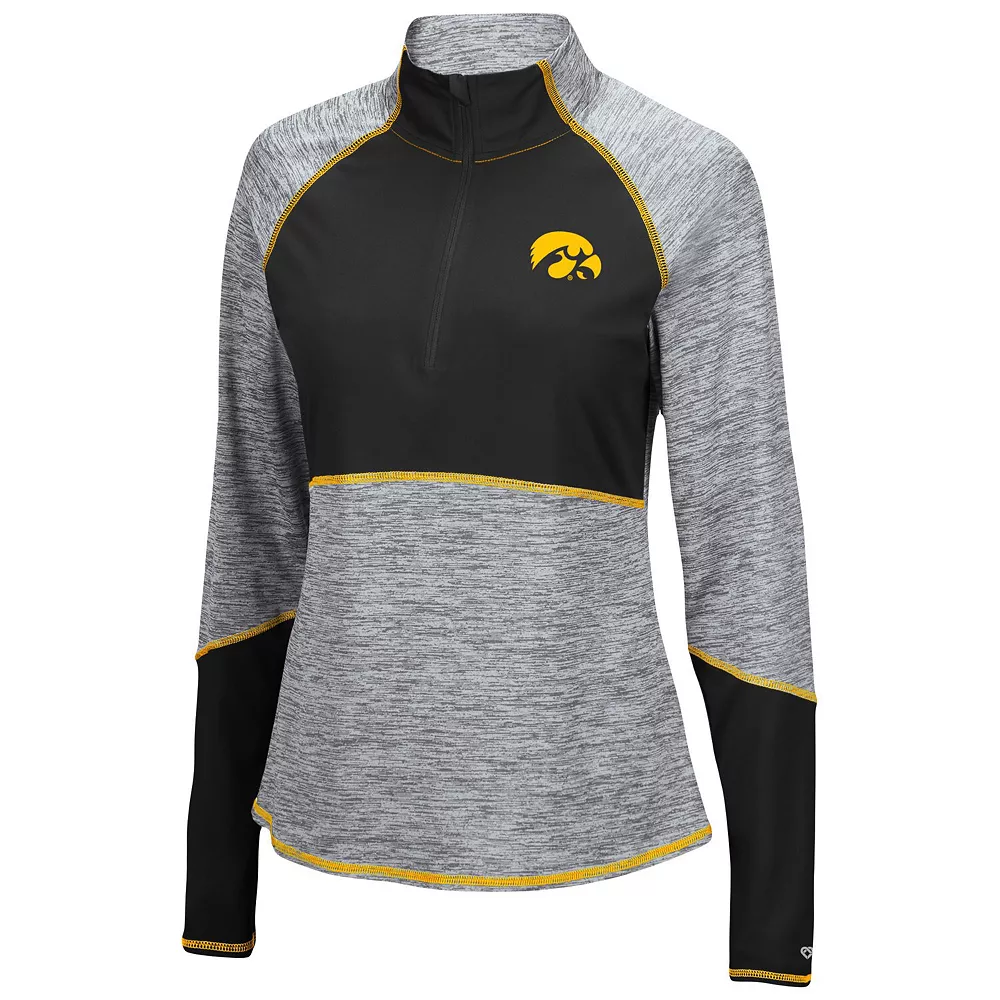 Focus attention on your Iowa Hawkeyes fandom by wearing this quarter-zip top from Colosseum. Its color-block design with matching stitching highlights the Iowa Hawkeyes logo and is accentuated by the contrasting space-dye pattern. In addition, raglan sleeves create a little extra room for more flexible movement.