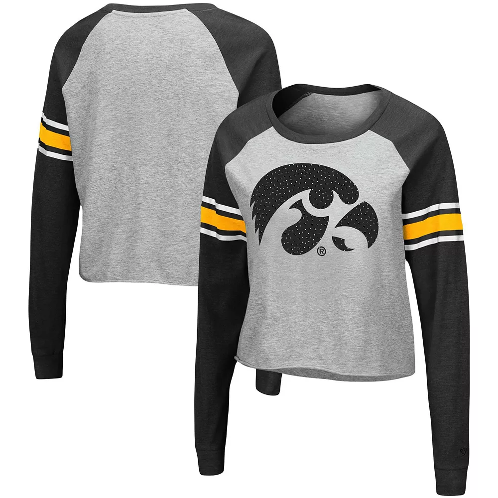 Let your Iowa Hawkeyes spirit shine in this Decoder Pin T-shirt. This chic top features a large Iowa Hawkeyes graphic on the chest with rhinestone embellishments that make your loyalty stand out for all the right reasons. In addition, the raglan sleeves offer ease of movement, so cheering on your team is all the more comfortable.