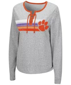 Show up ready to cheer your heart out in style by grabbing this Sundial T-shirt from Colosseum. Along with a bold Clemson Tigers logo and team-inspired colorway, this comfy tri-blend tee features a lace-up neckline. Ensure everyone knows you have Clemson Tigers spirit in spades by adding this shirt to your rotation.
