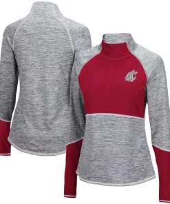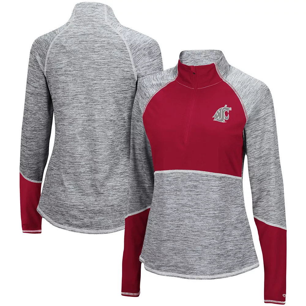 Focus attention on your Washington State Cougars fandom by wearing this quarter-zip top from Colosseum. Its color-block design with matching stitching highlights the Washington State Cougars logo and is accentuated by the contrasting space-dye pattern. In addition, raglan sleeves create a little extra room for more flexible movement.