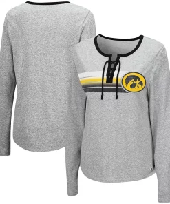 Rep your Iowa Hawkeyes in style by grabbing this Sundial T-shirt from Colosseum. It features super-soft tri-blend material for optimal comfort. Along with bold Iowa Hawkeyes graphics and team-inspired colorway, this tee has a lace-up neckline for a charming touch.