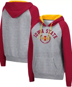 A comfy Iowa State Cyclones hoodie is a staple in any fan’s closet. Makes yours this Contrast pullover hoodie from Colosseum. Its raglan sleeves provide additional room under the arms for a more comfortable fit and better range of motion, while its contrast-color hood lining gives it an extra splash of color. With this Iowa State Cyclones hoodie in your closet, you’ll have a bold, game-ready look you can throw on a soon as cooler temperatures arrive.