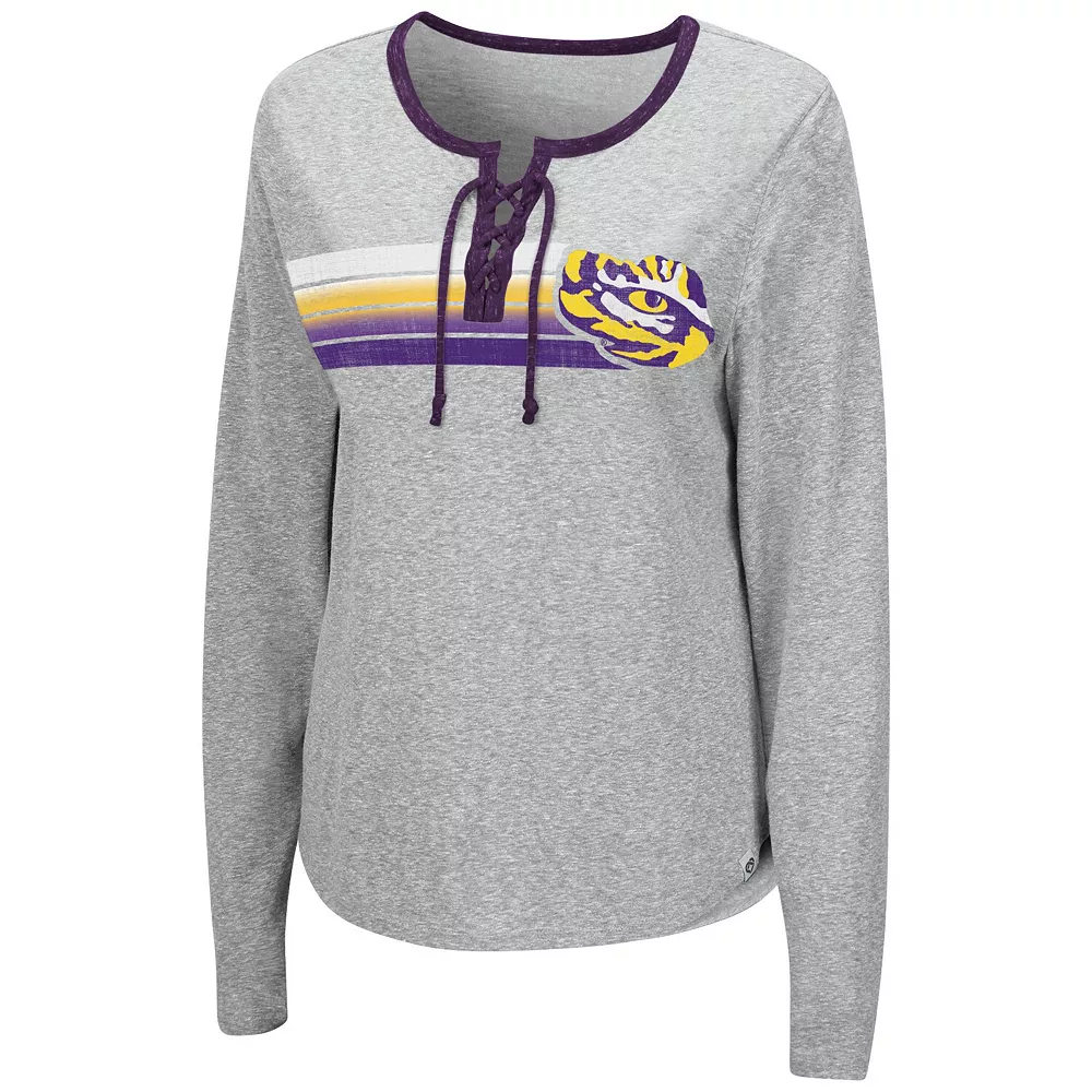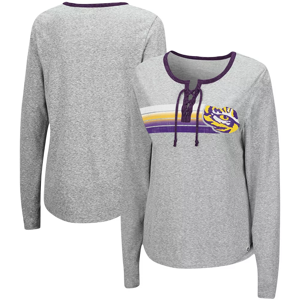 Show up ready to cheer your heart out in style by grabbing this Sundial T-shirt from Colosseum. Along with a bold LSU Tigers logo and team-inspired colorway, this comfy tri-blend tee features a lace-up neckline. Ensure everyone knows you have LSU Tigers spirit in spades by adding this shirt to your rotation.