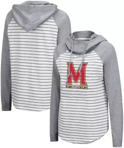 Stay at a comfortable temperature on cooler Maryland Terrapins game days in this Gloria Yacht Trip Striped Hoodie T-shirt from Colosseum. It features Maryland Terrapins graphics printed on a stripe design and an adjustable hood. Raglan sleeves also provide some extra room for better movement.