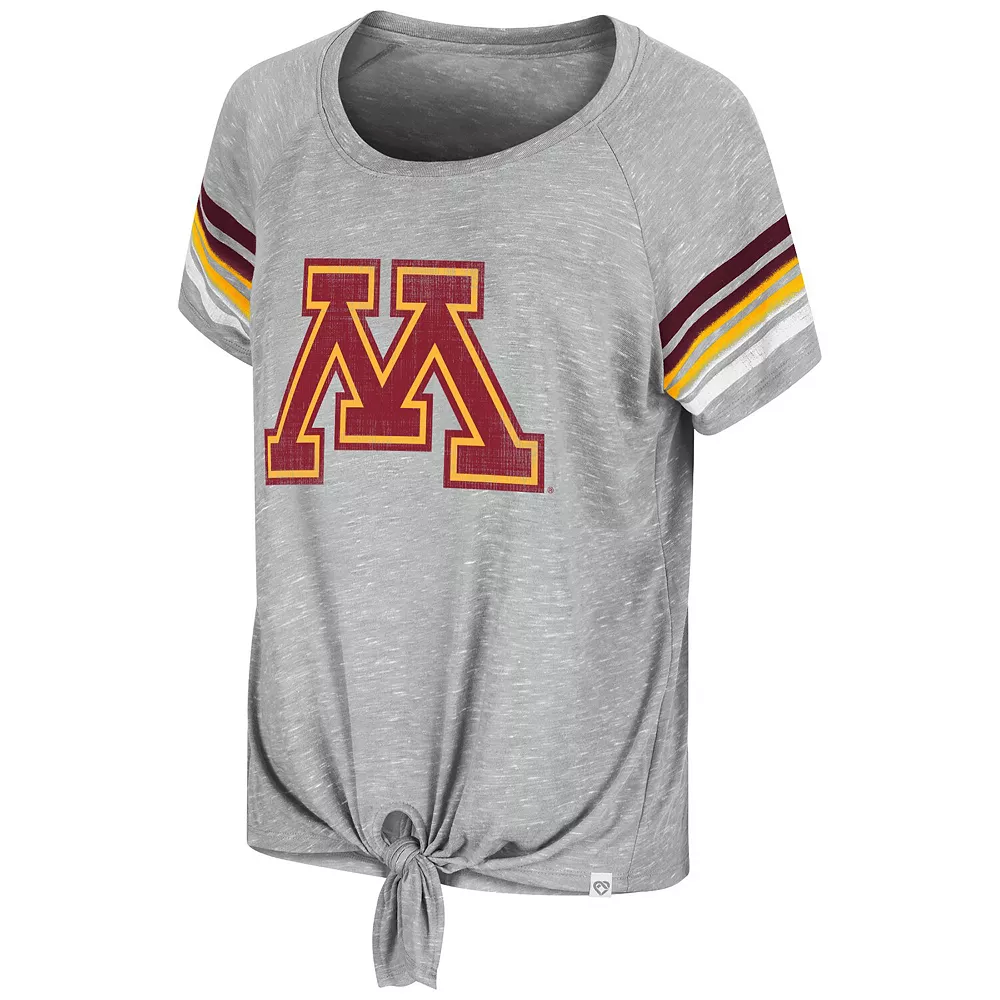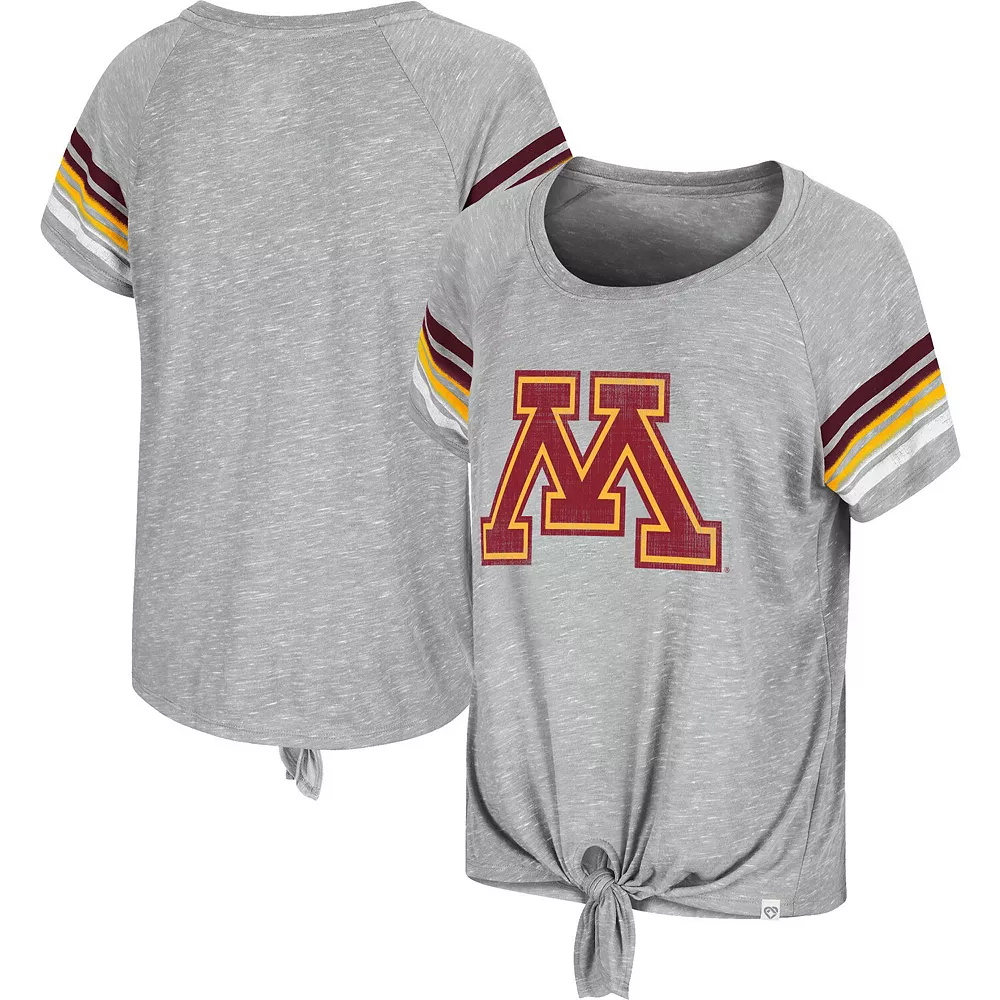 Flaunt your undeniable Minnesota Golden Gophers spirit in chic fashion by grabbing this Boo You Knotted T-shirt from Colosseum. Along with a classic crew neck for easy matching, this tee offers super-soft fabric to keep you comfortable and raglan sleeves for ease of movement. Best of all, the striking Minnesota Golden Gophers graphics and fashionable front knot show everyone you’re not afraid to cheer on your favorite squad in style.